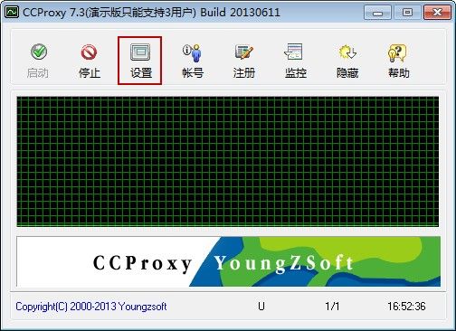 1) 在CCProxy主界面中,单击“设置”按钮(如图 1‑1)。